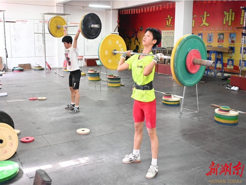 他们的坚守结出了耀眼的果实:教练组培养的麻俊成、刘钰栋,在2024年湖南省青少年举重比赛中双双包揽抓举、挺举、总成绩三枚金牌,更一口气打破州、省青少年纪录各三项。“破纪录那天,孩子们抱着杠铃哭了,不是累的,是高兴的。”张智慧教练笑着说,眼角却泛起湿润。