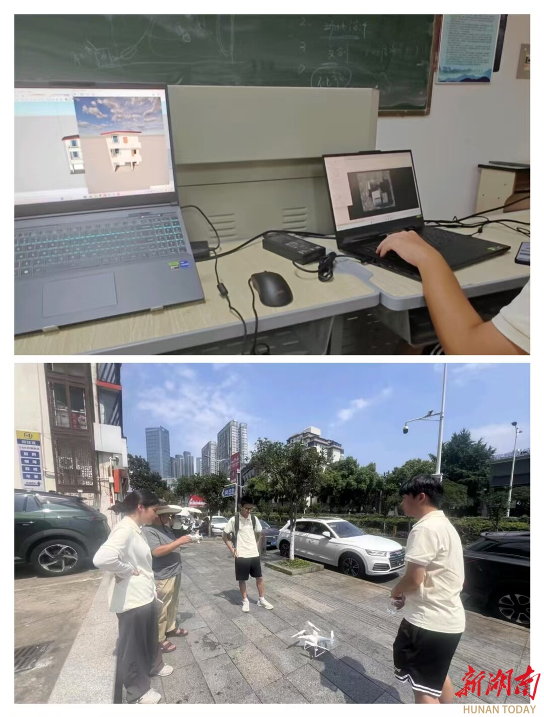 协助胡老师操控无人机,则是全新的挑战。运输、选址、保障起降,神经时刻紧绷。胡老师严谨地勘查“宝藏起飞点”,我们则屏息凝神守护设备安全。当珍贵数据顺利获取,那份技术协作成功的喜悦,冲散了所有紧张。而在东茅街茶馆的时光,则是调研中的“时光胶囊”。再次造访,茶馆老板眼中闪烁着光芒,侃侃而谈其设计理念与未来愿景,“我想让这里不仅是茶馆,更是老长沙文化的活态展馆”。他的话语如钥匙,为我们打开了理解本土文化传承与创新的大门。与本地居民围坐交谈,听他们细数生活变迁,调研的深度在茶香与故事中悄然积淀。其中男生与女生的采访遭遇,依旧令人忍俊不禁,同一个对象态度却截然不同,或许这便是人际交往中最微妙的张力 —— 有人用疏离筑起防线,却在另一番温柔攻势下卸了铠甲;有人把客套当盾牌,偏会为几句贴心话敞开心扉。难得的午休时光,在茶馆的荫凉与历史气息中显得格外珍贵。