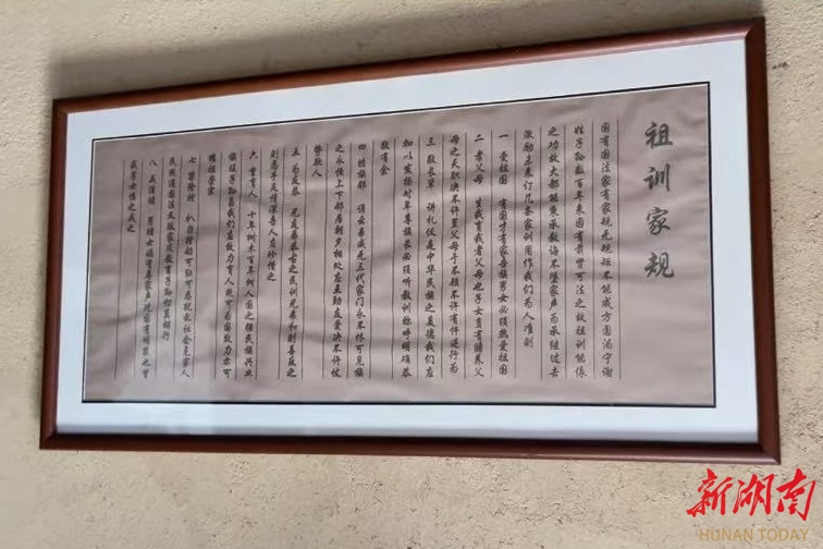 “兰馥冲畔书香浓,家国情怀纸墨中。谆谆教诲如春雨,红色家风润无声。”穿过邓小平同志亲笔题写的“谢觉哉同志故居”的匾额,团队成员走进故居的正堂屋,讲解员重点介绍了右边墙上悬挂的谢氏家族祖训家规“爱祖国、孝父母、敬长辈、睦族邻、为友恭、重育人”。这纸家规,字字珠玑,是谢家优良家风的直观体现,承载着家族代代相传的精神与风骨。走进谢廉伯卧室,讲解员指着桌上的家书,深情诵读“起得早来眠得晚,能多做事即心安”,字里行间饱含着谢老克己奉公的清廉风范,团队成员纷纷驻足仔细研读,感受家书中流淌的赤诚初心与质朴情怀。
