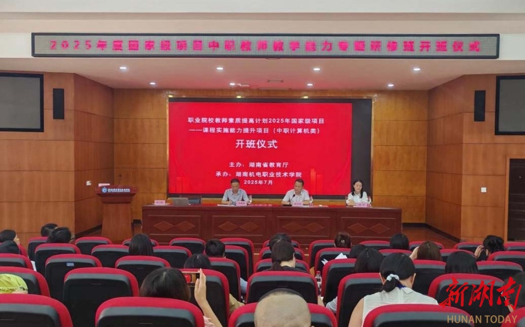 (通讯员 蔡恺怡)近日,由湖南省教育厅主办、湖南机电职院承办的“职业院校教师素质提高计划2025年国家级项目——课程实施能力提升项目(中职计算机类)”开班仪式,在学校多功能报告厅举行。来自全省各中职学校的40 名计算机类专业教师汇聚于此,共同开启为期两周的线下研修征程。