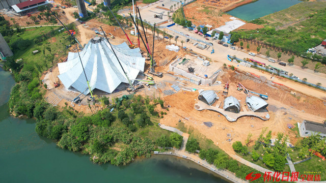 第五届湖南旅游发展大会将于9月在怀化举办,怀化精心铺排38个重点文旅项目和31个关联项目。7月14日,第五届湖南省旅发大会重点项目——怀化东盟集项目快马加鞭,进度条拉满,900多名建设者奋战在一线,确保7月底交付。