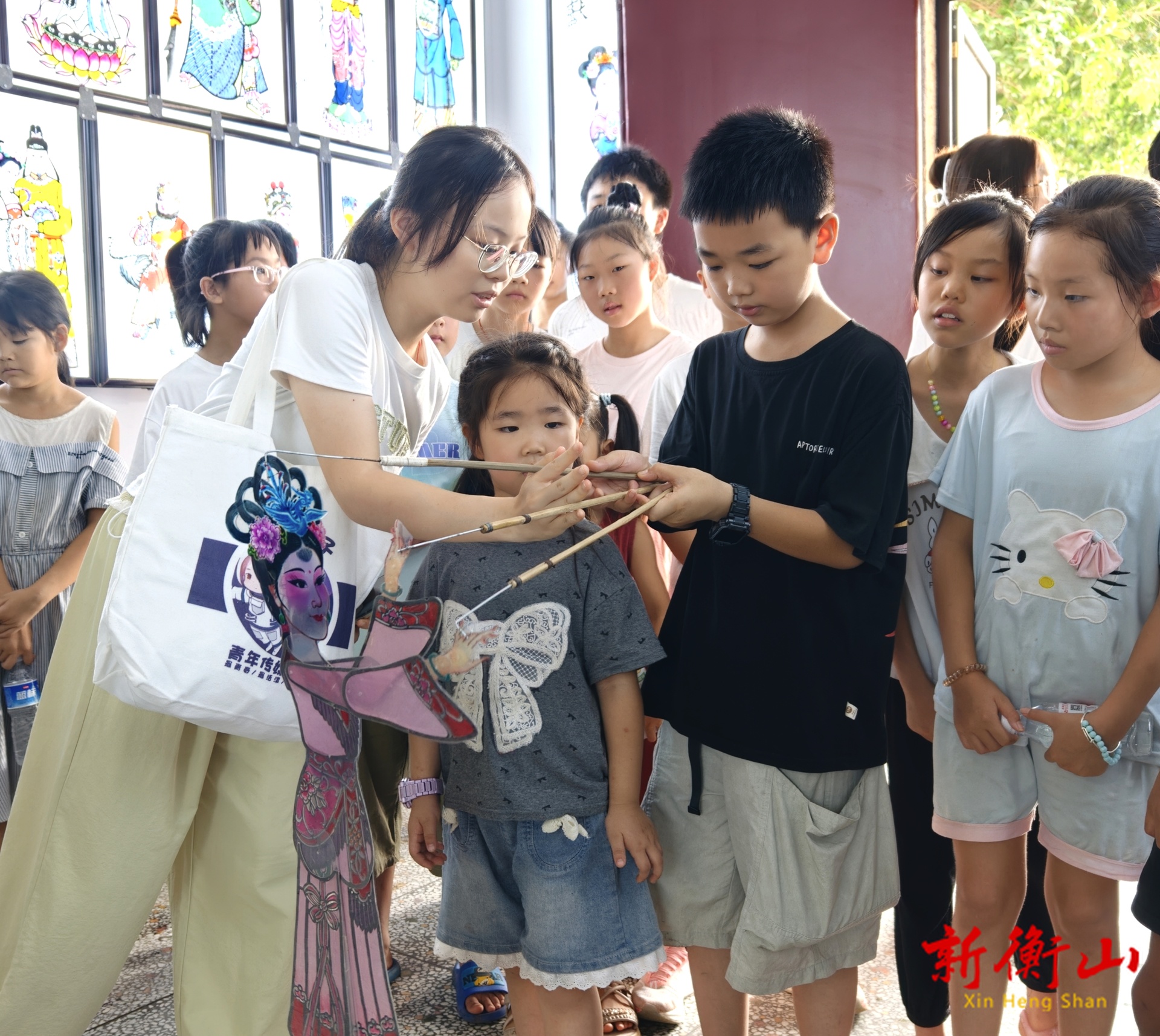 7月14日,在衡山县萱洲镇,一堂皮影戏课堂正让同学们乐在其中。在皮影戏非遗传承人的讲解下,中南大学学生和萱洲镇的孩子们一起操控“皮影小人”,一场面对面的交流不仅拉进了农村留守儿童们的距离,也为他们开启了一扇通往传统文化宝库的大门,激发了孩子们对传统文化的热爱与传承。