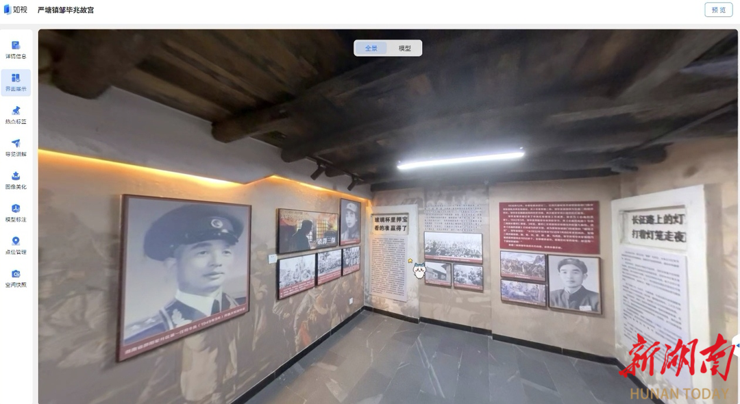 当快门轻轻按下,移动端全景采集设备已悄然封存下故居的每一寸光影与空间脉络。从邹毕兆的生平介绍到荣誉墙,从照片合集到先进事迹,实践团成员用脚步丈量故居,制作了1:1可在线浏览的邹毕兆故居3D全景。