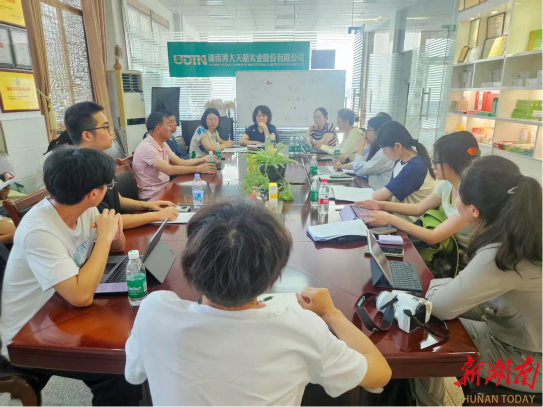 2025年7月6日上午,为深入探索沅江市绿色循环经济与文旅产业融合发展路径,湖南第一师范学院旅游管理专业暑期实践团和湖南师范大学数学与统计学院三下乡社会实践团一行前往沅江开展暑期实践活动。本次活动由湖南省双碳研究院院长李科教授带队,联合湖南第一师范学院商学院彭小舟、黄予勤老师共同前往湖南博大天能实业股份有限公司,公司董事长杨国舜出席调研座谈会。