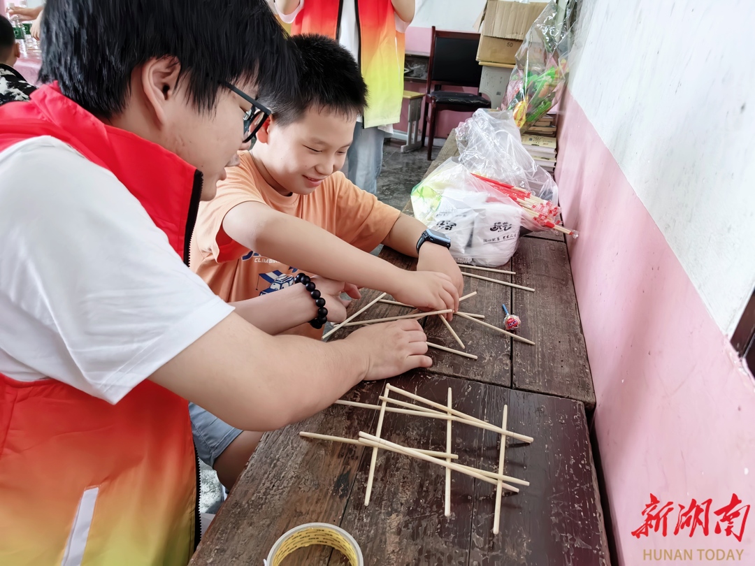 一页页PPT知识展示、一堂堂知识讲解、一次次互动体验……团队还为青峰村6岁到12岁的小学生精心设计了主题趣味科普课堂。课堂上,团队成员通过生动的音频图文讲解房屋结构基础知识,通过搭建“达·芬奇桥”展示桥梁的稳定性与支撑性,通过益智的模型演示讲解结构原理,孩子们在踊跃答题、搭建模型、积极实践过程中,感受到了成为“小小工程师”的乐趣。