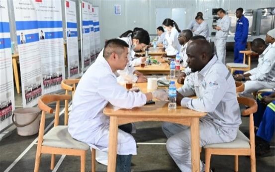 医疗队队长郑兴友医生代表医疗队,将一箱箱承载着湖南人民心意的常用药、急救药交到发电厂相关负责人手中。义诊开始后,诊疗区瞬间被围得水泄不通。郑兴友负责导诊分流,用流利的英语快速询问病情,将患者精准分流到各个专科医生。