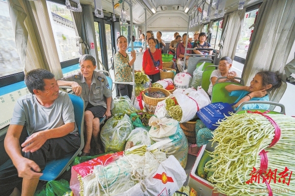 这趟被当地菜农亲切称为“菜农公交专线”的便民车,源于去年5月的一项贴心举措。为破解菜农卖菜出行难问题,当地交通部门、公交公司、驻村工作队等协同推进,将原途经新湾村的15路、枫香村的39路城乡公交线路末班车,延伸至八月楼农贸市场。菜农只需支付2元票价,每袋蔬菜加收1元费用,便可“一车直达”,彻底打通了卖菜的“最后一公里”。