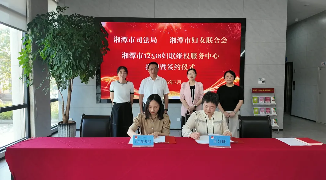 湖南日报·新湖南客户端7月16日讯(通讯员 周思)7月14日,湘潭市12338妇联维权服务中心正式挂牌成立。市司法局局长钟晋,市妇联党组书记、主席陈虹伶共同为中心揭牌。市妇联党组成员、副主席彭灿辉,市司法局党组成员、副局长李凌波代表双方签署《关于共建湘潭市12338妇联维权服务中心的合作协议》。