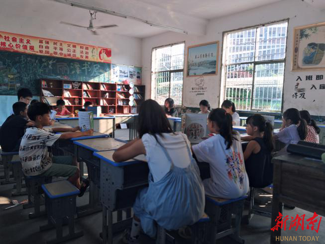 书屋每日开放时间为早八点半至晚八点,但孩子们的热情远超预期——清晨还未到开馆时间就已有小读者捧书静读,闭馆后,他们仍久久不愿离去。为激发孩子们的阅读兴趣,书屋推出了“阅读集章”活动——孩子们每读完一本书即可获得一枚印章,集章数量多者可兑换奖品。同时书屋定期举办“阅读心得分享会”并开设“湘野悦读”课程,让少年们在交流与经典共读中感受文字魅力。