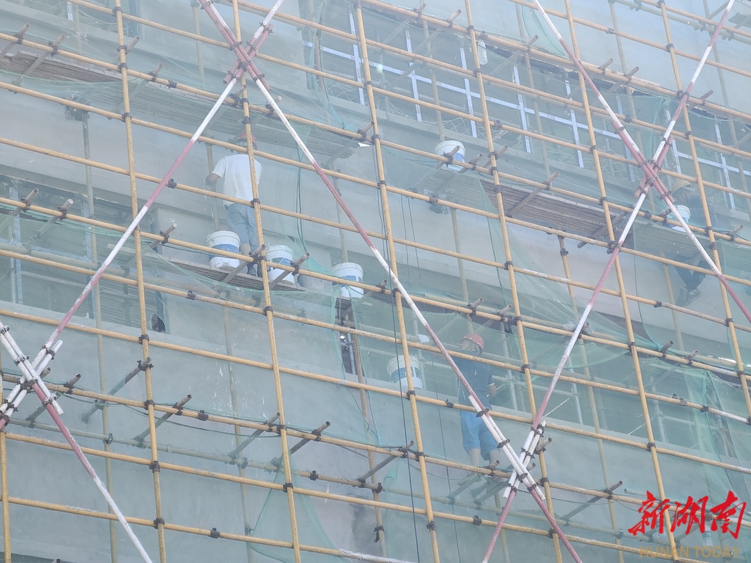 “上午这面外墙太阳晒不到,就先粉刷这一片;下午太阳照过来了,我们就粉刷对面的外墙。这样不仅可以避开烈日暴晒,效率还高,预计月底就能全部完工。” 粉刷工唐师傅说。