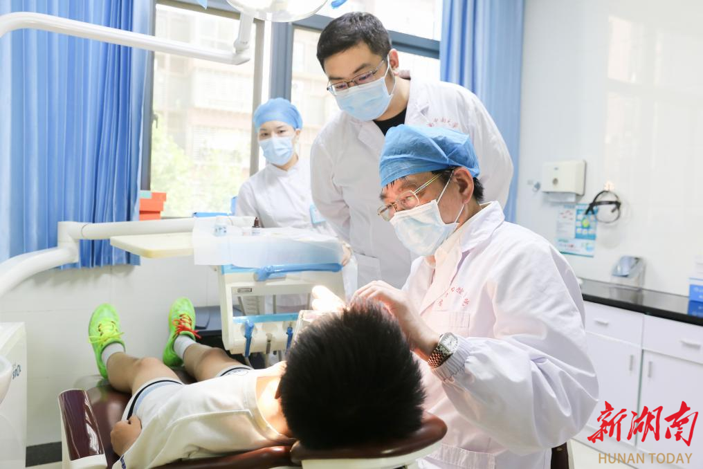 (中南大学湘雅口腔医院专家团队为患者进行口腔检查)