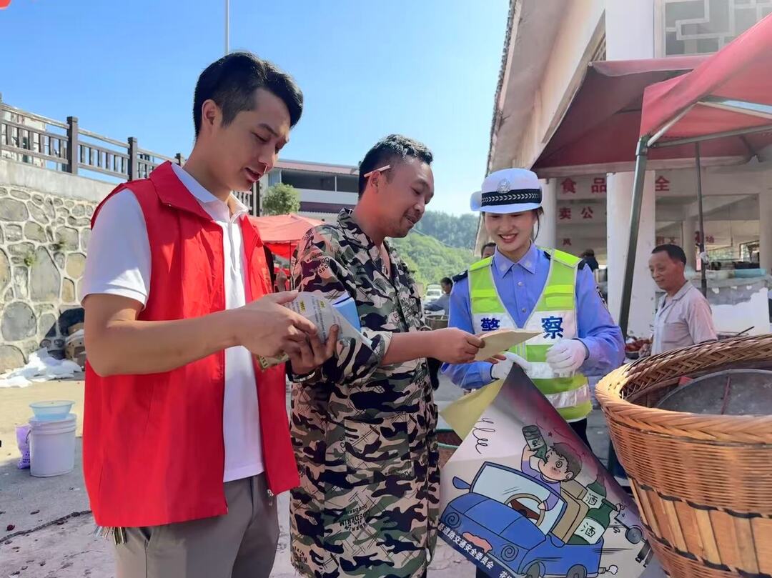 新湖南客户端7月17日讯(通讯员 张红军 石遥)近日,湘西土家族苗族自治州花垣县公安局交通管理大队联合辖区派出所与政府协同发力,到边城镇、石栏镇、龙潭镇、麻栗场等地,将教育安全法规与防范电信网络诈骗知识送到乡亲们身边,全力编织守护生命与财产安全的“平安网”。