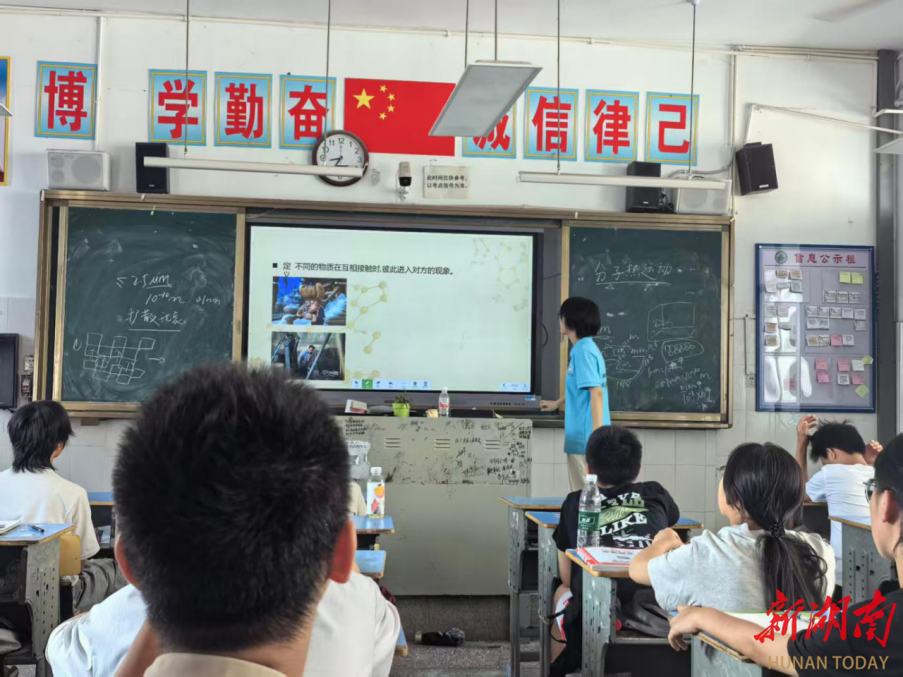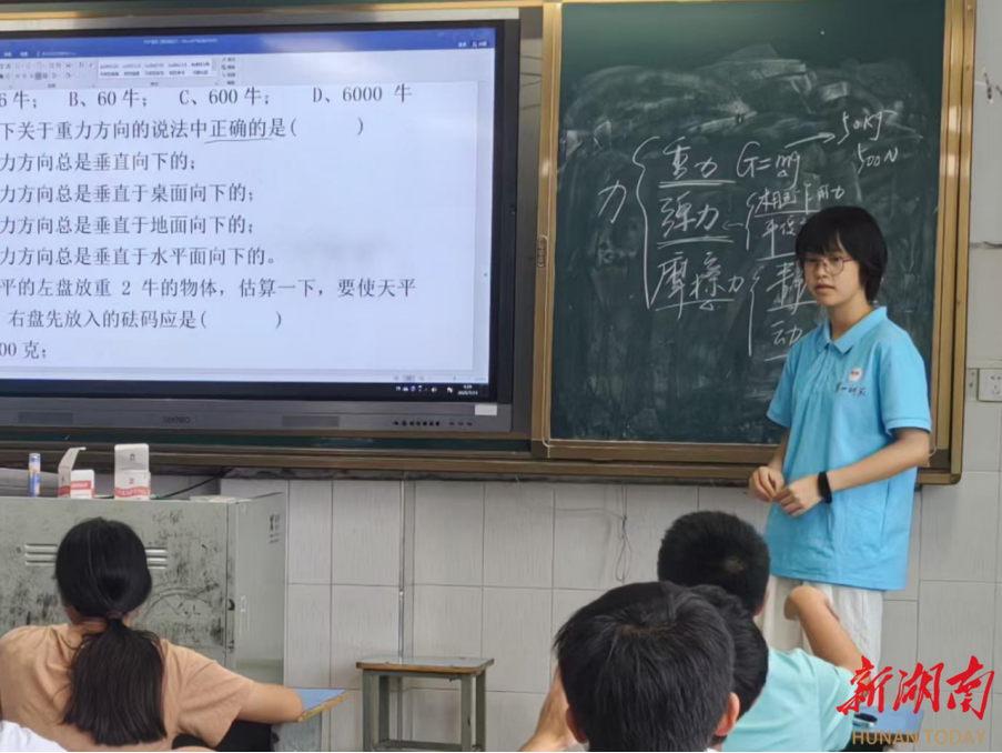 2025年7月16日,湖南第一师范学院数学与统计学院“数映红途”乡村振兴促进团成员张煦涵老师,为同学们带来了一堂生动的八年级力学复习课。课堂紧扣“让科学回归生活”的理念,将重力、压强、浮力、摩擦力等抽象知识与生活实例深度融合,在一节课的互动中,让同学们在实践中夯实基础,在探究中培养科学思维。