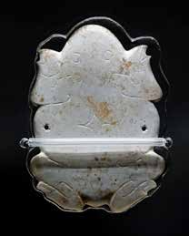 玉獠牙神面牌饰,新石器时代,湖南澧县孙家岗遗址149号墓出土,现藏湖南省文物考古研究院。牌饰呈灰白色,正面阳纹,背面有对应阴纹,雕刻着一个双目圆睁、獠牙夸张、头戴宝冠的人面,在同类器物中堪称精品孙家岗遗址的突然兴起为澧阳平原带来新的文化要素,北方的入侵者带到这里的除日用陶器,还有等级极高的玉礼器。在孙家岗遗址发现的200余座墓葬中,不少将精美玉器作为随葬品,147号墓随葬品共12件,其中包含3件玉器。其中一件鸟首玉璜呈半环形,洁白透亮,一头雕刻一个栩栩如生的鸟首,精美异常;149号墓随葬9件器物,其中2件玉器,玉器中一件玉神面牌饰颇为知名,牌饰呈灰白色,正面阳纹,背面有对应阴纹,雕刻着一个双目圆睁、獠牙夸张、头戴宝冠的人面,在同类器物中堪称精品;唯一一座瓮棺葬71号墓中,出土了玉蟾蜍、玉虎首、残玉鸟等像生玉器;让人印象最为深刻的14号墓中出土玉器十余件,包括玉雕的龙、凤、璜、璧、笄、坠等。龙凤配饰皆多处镂空,龙体盘曲,龙角复杂繁缛,凤鸟昂首、展翅、卷尾,羽翼华丽异常,这两件器物均能算中国新石器时代制玉技术最高成就的代表。后石家河文化时期北方因素的到来,在原本玉器并不常见的澧阳平原上刮起一阵“玉文化旋风”,令人耳目一新。
