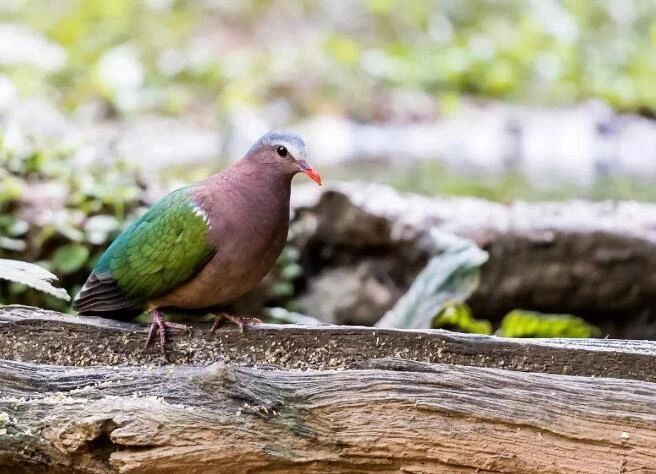 近日,湖南八面山国家级自然保护区管理局科研开发利用科工作人员在整理红外相机素材时,发现一只翅膀翠绿、嘴和脚红色的鸟类,经专家鉴定,确认为鸽行目鸠鸽科金鸠属鸟类——绿翅金鸠。绿翅金鸠2018年在湖南首次发现,这次出现在八面山,为郴州市新记录物种。