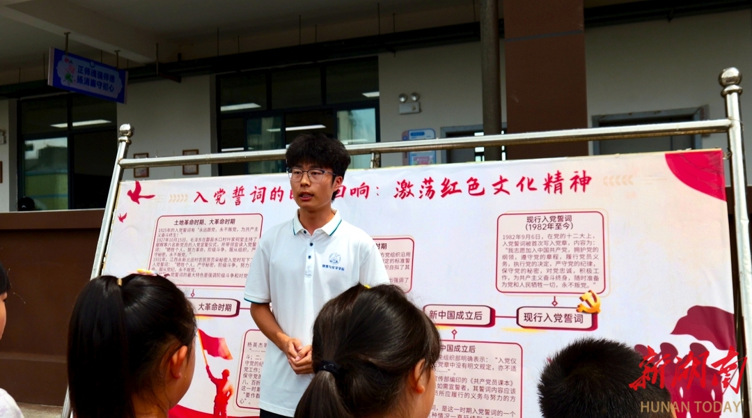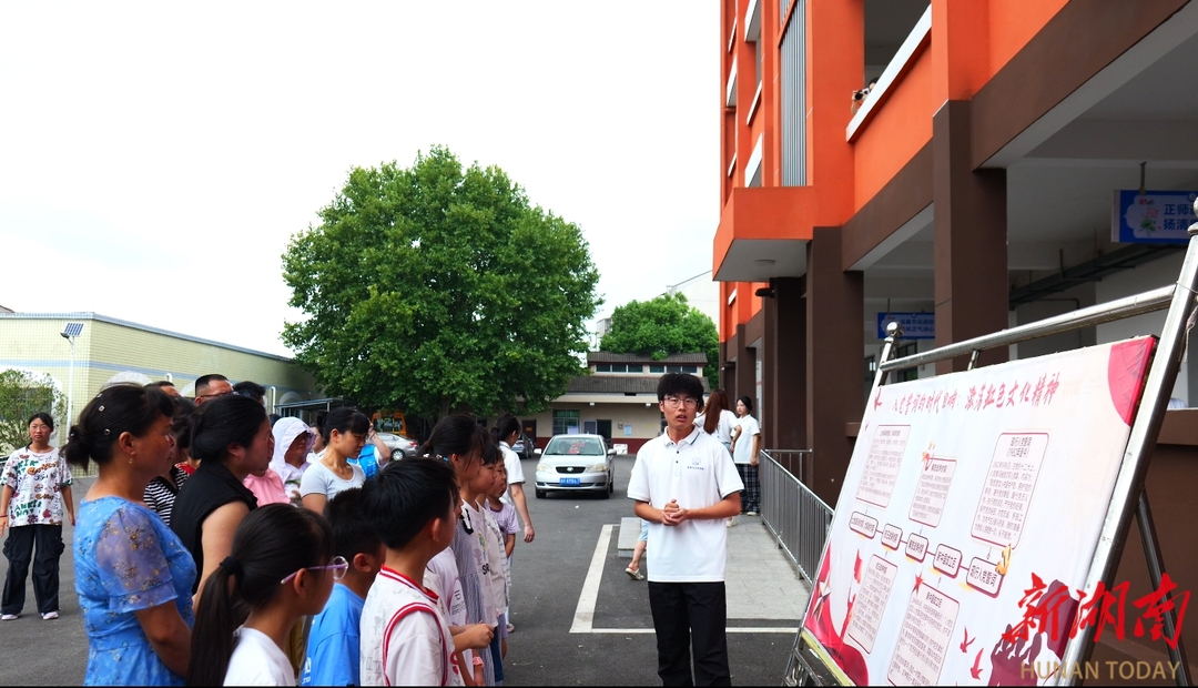 7月17日,湖南第一师范学院物理与化学学院“科慧星河”教育关爱服务团队在沅江市新湾镇学校开展“讲好红军故事,赓续红色初心”主题宣讲活动,当地百余位居民齐聚一堂,聆听老红军鄢辉的革命故事,感受入党誓词百年变迁中不变的忠诚与奉献。