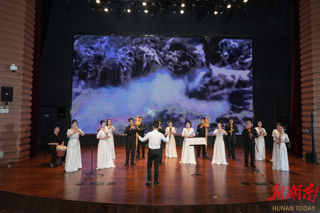 湖南日报·新湖南客户端7月17日讯(通讯员 肖舞 肖惠馨 黄自强)7月16日晚,长沙市音乐家协会葫芦丝巴乌学会成立十一周年暨“丝韵潇湘·乐颂祖国”葫芦丝巴乌专场音乐会在长沙音乐厅精彩上演。来自永州、湘潭、怀化、岳阳及长沙等地的13支团队共200余人同台献艺,以悠扬丝韵奏响爱国情怀,为炎炎夏日里的市民带来一场兼具民族风情与赤子之心的音乐盛宴。