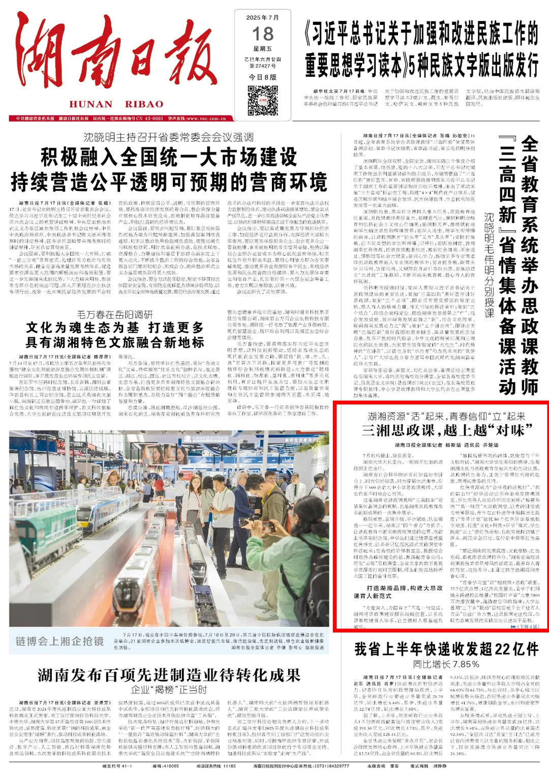 “为党育人、为国育才”不是一句空话。湖南将思政课建设摆在战略位置,以系统思维构建育人体系,让立德树人根基越扎越牢。