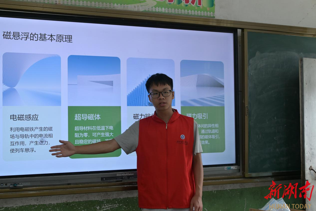 午后,阳光透过和平小学的梧桐叶,在走廊地上投下晃动的光斑。木质窗棂被晒得有点烫,操场边树上的蝉鸣,和教室里的笑闹声混在一起。我是湖南科技学院 “云上青春行” 志愿服务团的一员,此刻正拿着实验箱站在教室门口,手心有点出汗 —— 今天要给孩子们上磁悬浮列车的课,这是我们在洪塘营瑶族乡的一段经历。教室门缝里漏出嬉闹声和粉笔划黑板的声音,像被阳光晒热的风铃。