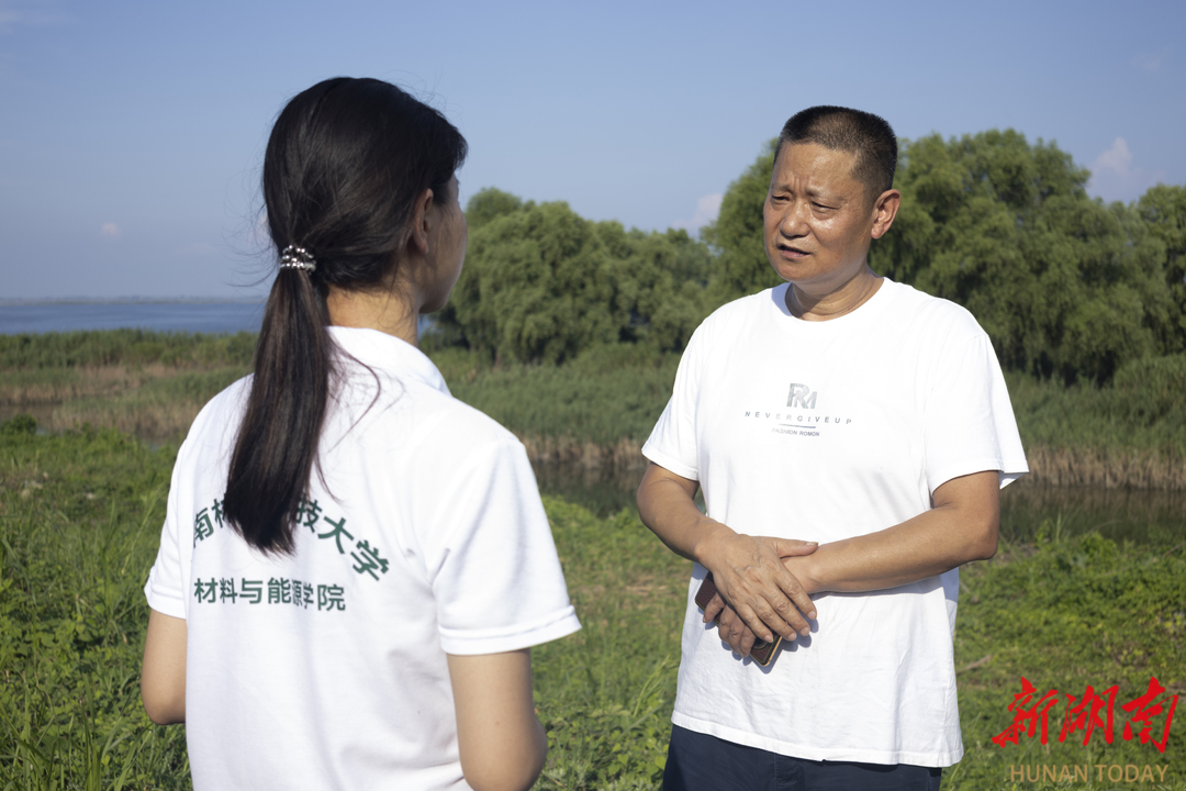 实践团深入一线企业,与百奇农民种植合作社负责人陈飞亚、湖南安环维农业科技有限公司代表陈庆展开了一场亲切且深入的交流访谈。见到陈飞亚时,他正站在湖边的芦苇丛前,望着这片芦苇荡,眼神里满是期待。交流中,实践团了解到陈飞亚自幼在芦苇地长大,家邻江河,芦苇荡沿江岸绵延。他从小观察芦苇的生长、收割与销售,看着芦苇资源闲置浪费,内心萌生发展芦苇产业、带动家乡发展的想法。