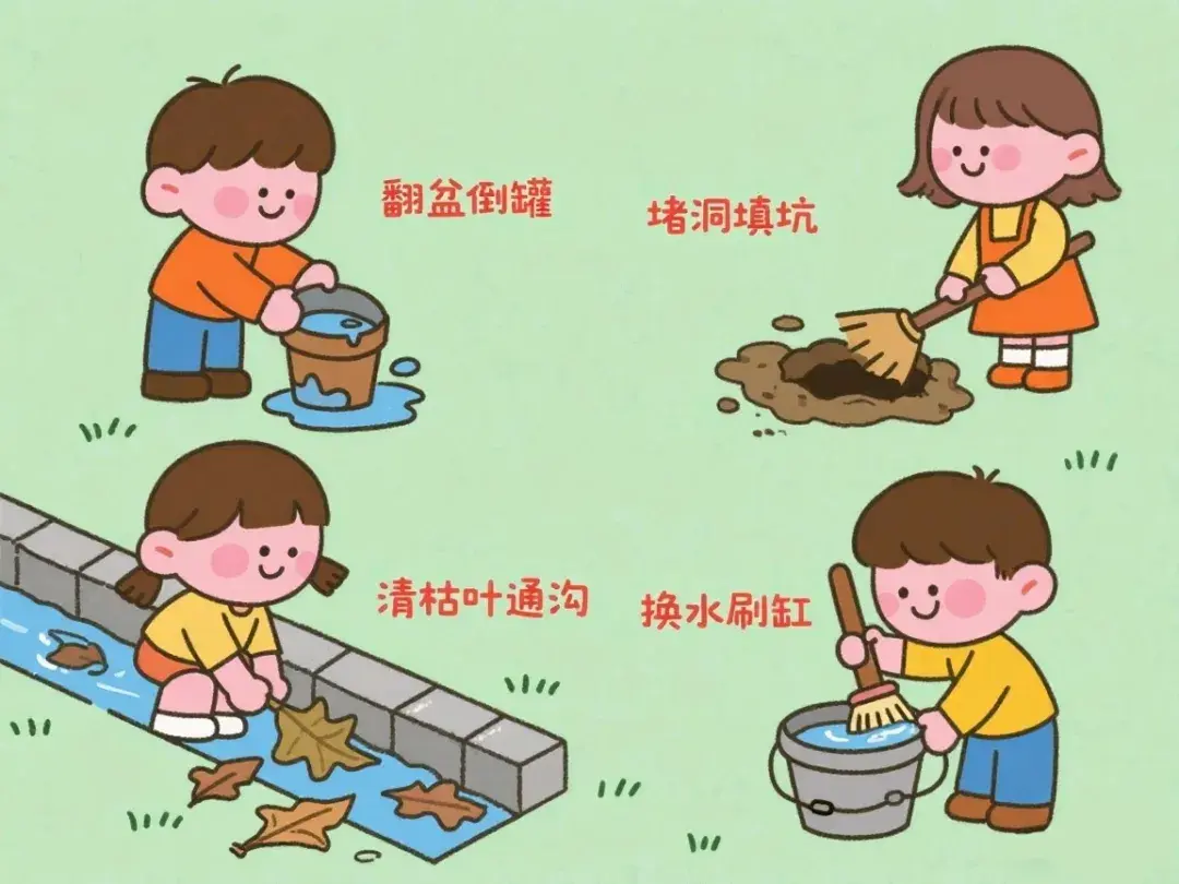 预防:清除积水,消灭蚊虫滋生地;外出时穿长袖衣裤,涂抹驱蚊剂;避免在蚊子活跃时段(清晨和傍晚)去蚊虫密集处。
