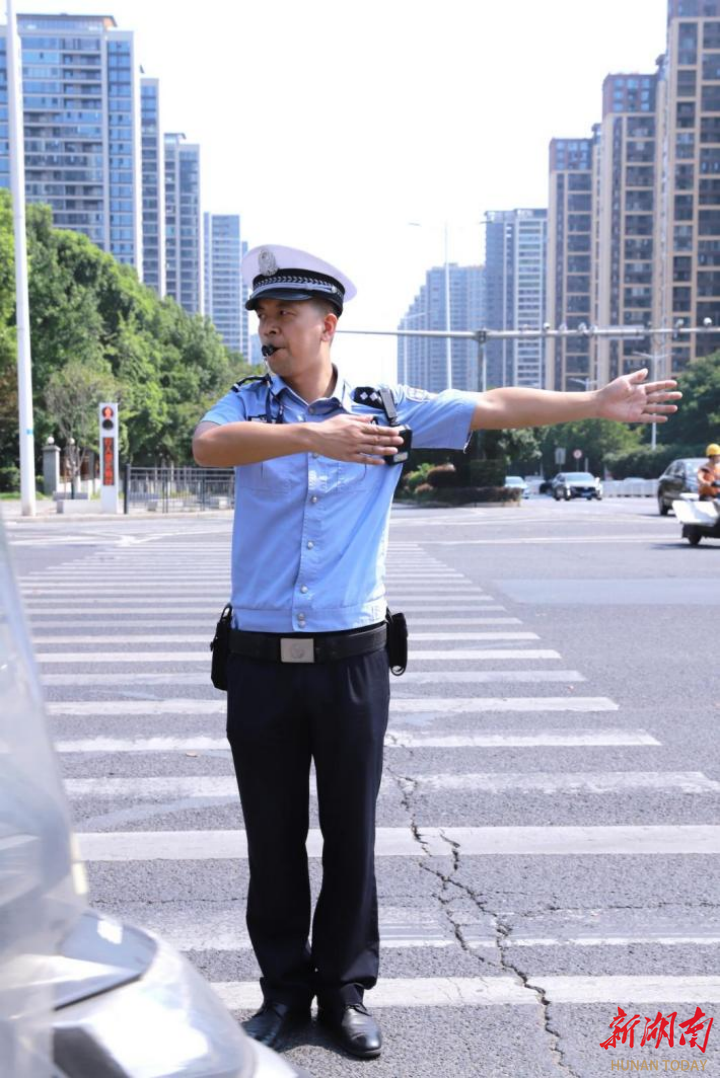 “你好,请停一下!电动自行车不戴头盔太危险。”上午九点,长丰大道与船山大道十字路口的柏油路面已被晒得发烫,交警周丹一边拦截违规车辆,一边耐心劝导车主,指挥手势在烈日下坚定有力。