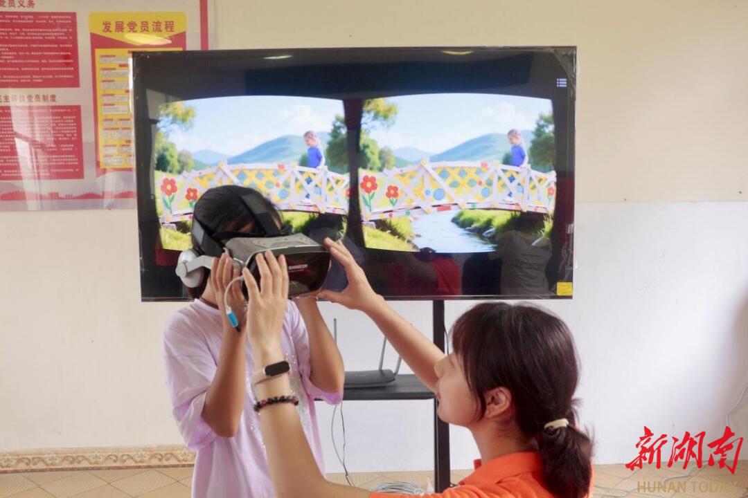 为了点燃孩子们心中更大的工程梦想,服务队巧妙地运用科技让冠军组纸桥“走出”课堂。首先利用AI图像生成工具,输入冠军组纸桥的关键结构特征和乡村常见场景关键词。冠军组纸桥瞬间“化身”为溪流上的竹木小桥、连接田埂的坚实便桥。接着,服务队将生成的图片导入VR眼镜里,当孩子们戴上VR眼镜,他们看到小朋友脚下踩着的正是以纸桥为原型“建造”的乡村小桥,他们可以“走”上桥面,低头观察桥下熟悉的加固结构如何支撑行人。这一刻,抽象的工程原理变成了可触摸的家乡未来图景。