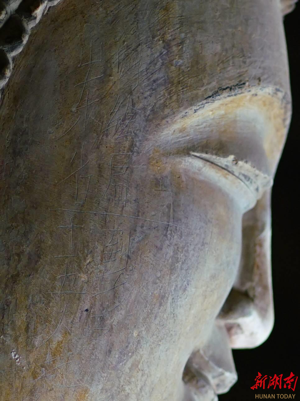 近日,有古建爱好者在山东省济南市四门塔景区参观,发现一处佛头侧面有“某某省测绘局十五人到此古迹”的刻字,其感到愤怒、遗憾和无奈。