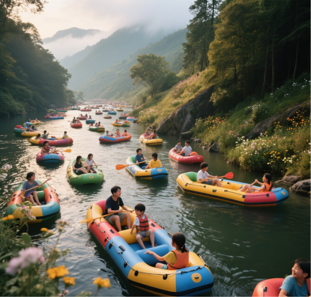 60分钟激情嗨唱,游客坐着皮筏艇即可聆听歌声的较量,畅享漂流的乐趣。漂流中心还专门为大家准备了精美礼品!