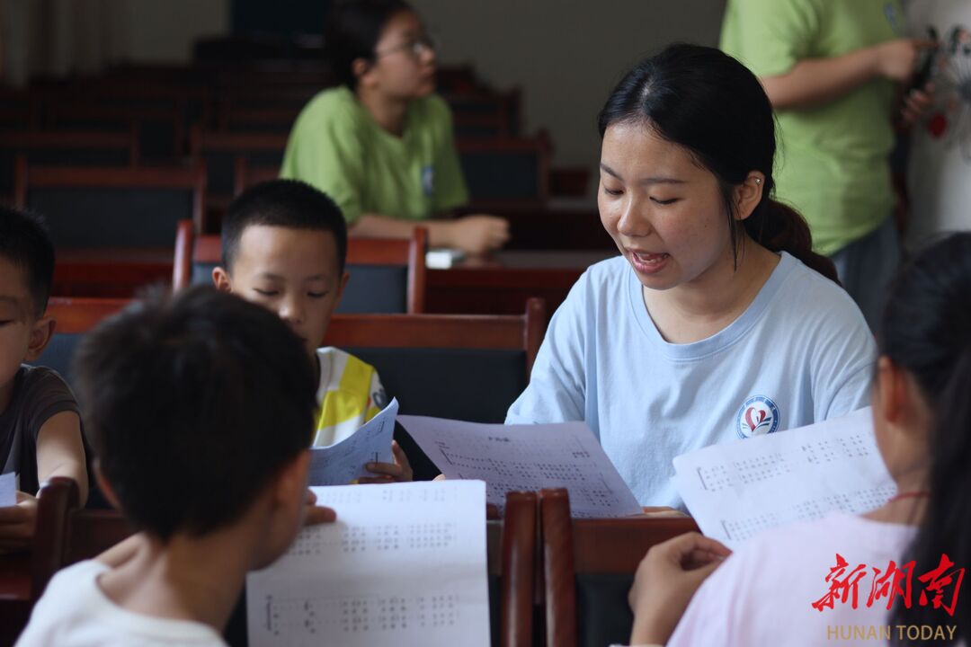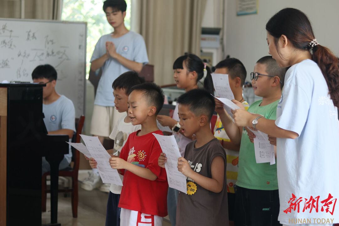 这个盛夏,长沙学院音乐学院暑期“三下乡”社会实践团走进长沙县青山铺镇,开展“星火相承,乡音筑梦”支教活动。队员们以音乐为媒,为乡村儿童播撒美育的种子,在歌声中传递历史与爱国情怀,谱写了一曲青春与乡村双向奔赴的动人乐章。