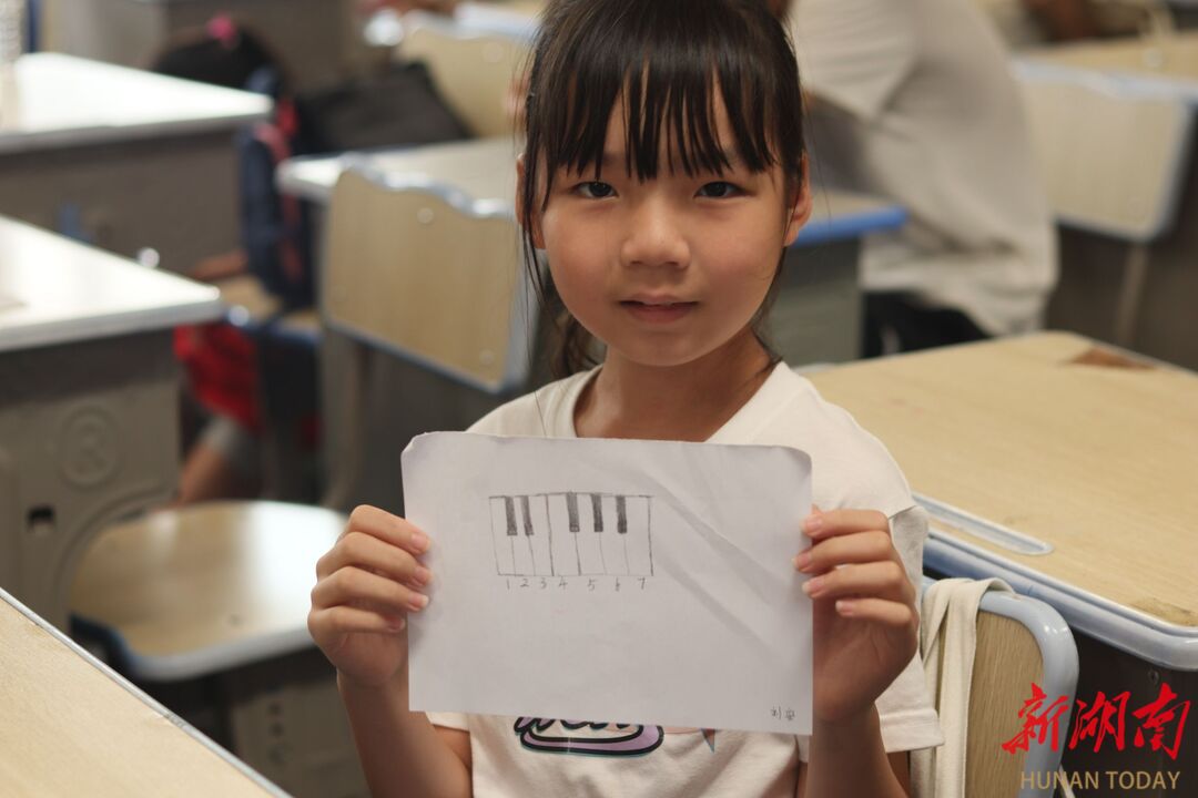 为引导孩子们感受音乐律动,队员们化繁为简。“嗒、嗒、嗒嗒嗒……”队员手指轻叩桌面发出的清脆节奏,瞬间吸引了所有孩子的目光。一双双小手屏息凝神地模仿着,简单的桌面敲击成了他们感知节奏的启蒙课。画笔在白纸上飞舞,一架架充满童趣的“钢琴”跃然纸上。当孩子们用略显生涩却无比认真的声音唱出“Do Re Mi Fa Sol La Si”的音阶时,仿佛清泉在流淌——美育的种子,在游戏与欢笑声中悄然埋下。