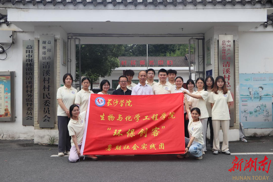 七月的风卷着荷香与墨味撞个满怀,长沙学院生物与化学工程学院“环保创客”实践团的队旗在湖南益阳清溪村口轻轻扬起。出发前指导老师说的“去看看文化如何在绿意里生长”,像粒饱满的种子,在我心里催生出满溢的期待。背包里的水质检测仪与空白笔记本,似乎早已知晓此行要记录的,是生态与书香交织的故事——那些关于“文绿共生”的猜想,正顺着叶脉般的村路悄悄蔓延。