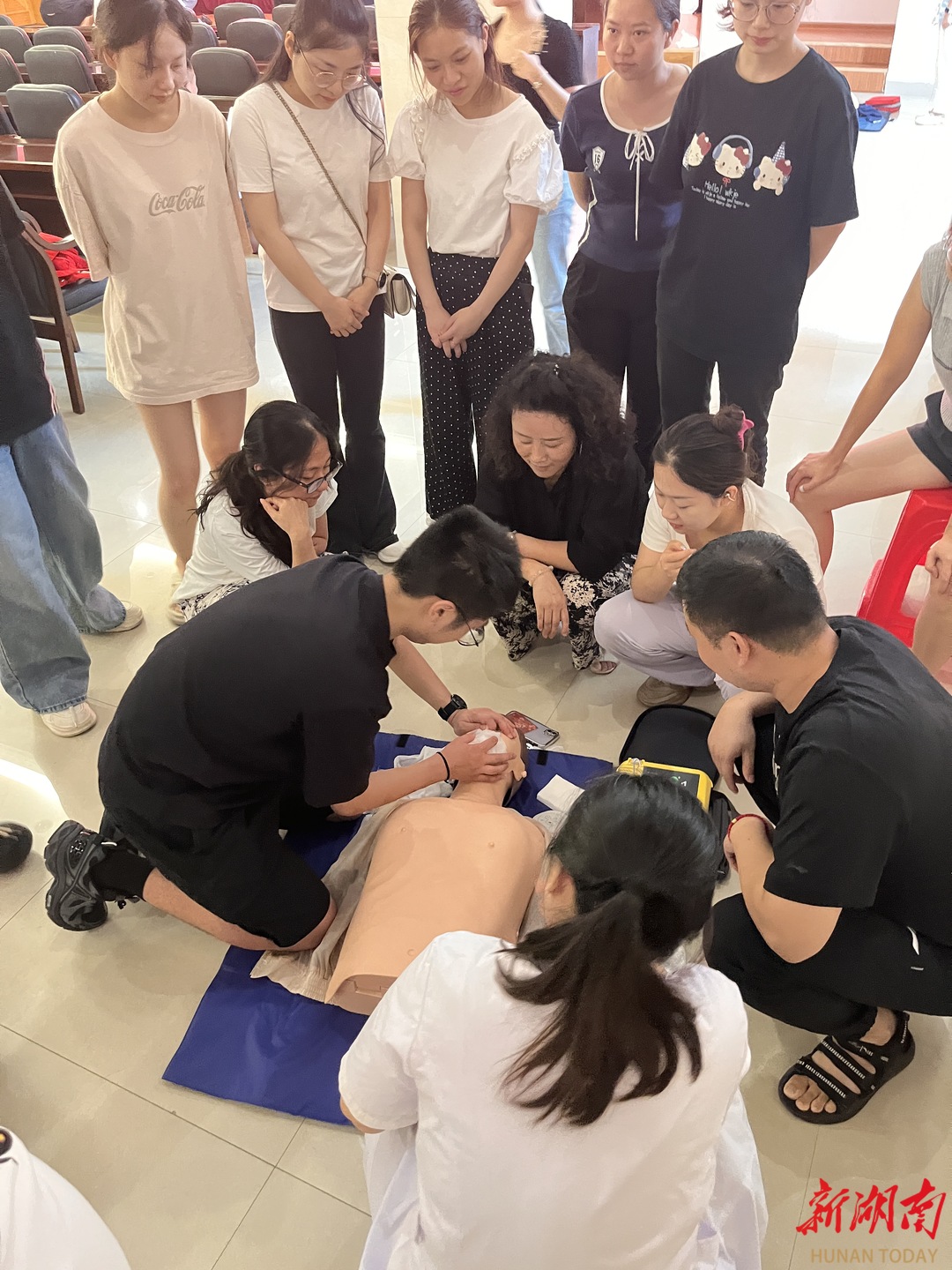 本次培训邀请南华大学附属第二医院急救中心资深专家团队现场授课,内容包括理论教学、实操演练和考核认证,旨在通过系统化、规范化的急救培训,为构建健康平安蒸湘的应急救护体系奠定坚实基础。