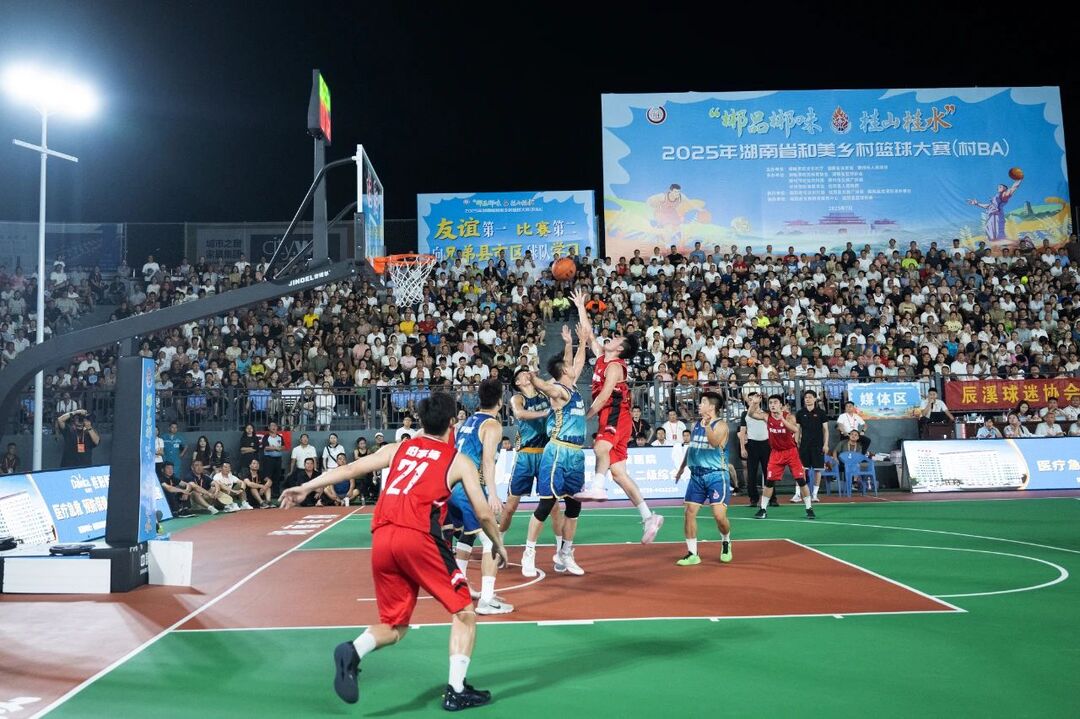 鼓点激扬,点燃运动激情;人潮涌动,汇成乡土热浪。7月12日—19日,“郴品郴味·桂山桂水”2025年湖南省和美乡村篮球大赛(以下简称“村BA”)在桂阳县举行。在每一次精准投篮、每一次雀跃欢呼中,力争上游的体育精神与蓬勃向上的乡村活力完美交融。这场精彩赛事不仅点燃了盛夏的篮球之火,更照亮了“体育+”赋能乡村振兴的无限可能。
