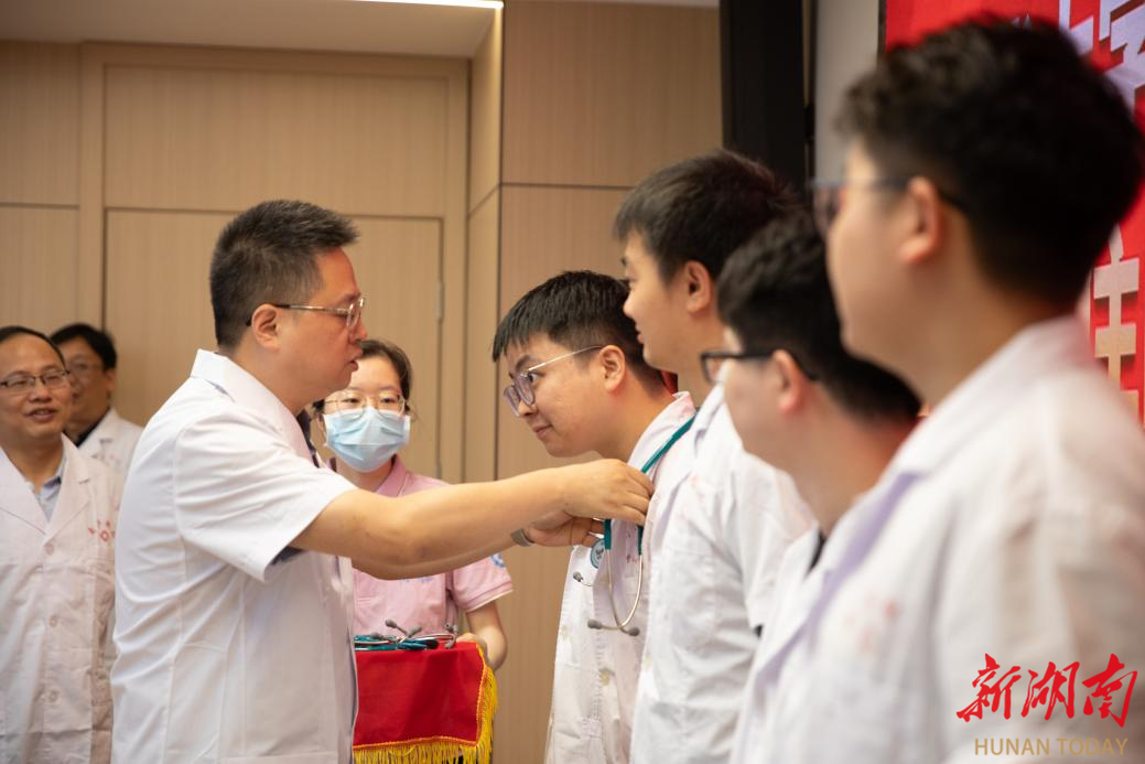 为学员戴上医院专属定制的镌刻着学员姓名的听诊器