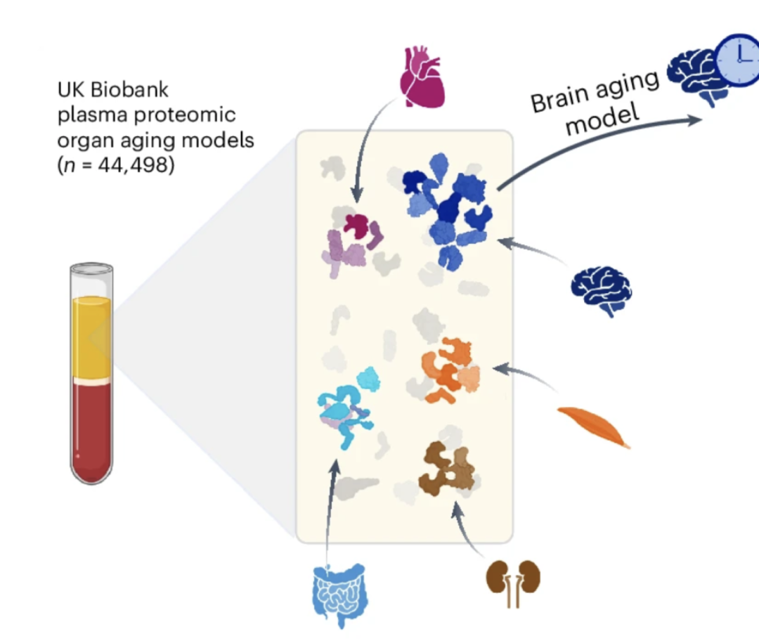 研究人员可以通过血浆中器官特异性蛋白质的含量,建立各个器官的衰老模型。图片来源:原论文