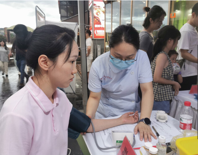 湖南日报7月21日讯(全媒体记者 张春祥 通讯员 周妙昱)7月20日晚,湖南省财贸医院在湘江新区梅溪湖步步高新天地梅溪大街前坪举办“三伏养生局”大型公益活动,将优质医疗服务送到居民家门口,活动以“三伏贴”为核心,为市民呈现了一场融合健康关怀、文化传承与趣味互动的夏日盛宴。