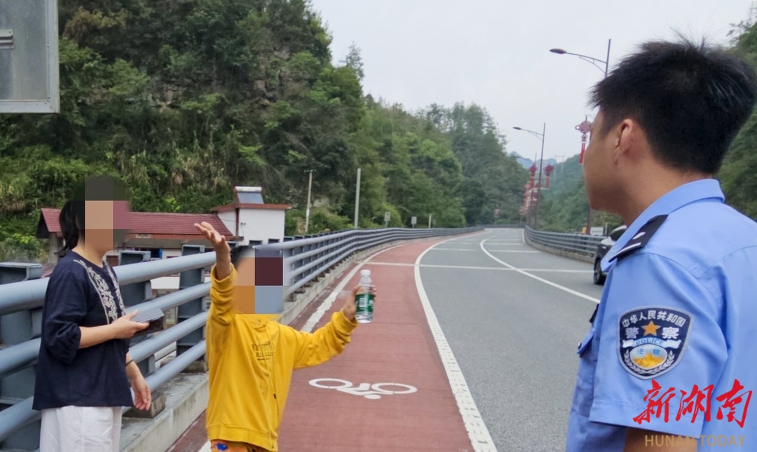 张家界武陵源走失小男孩向民警挥手道别。