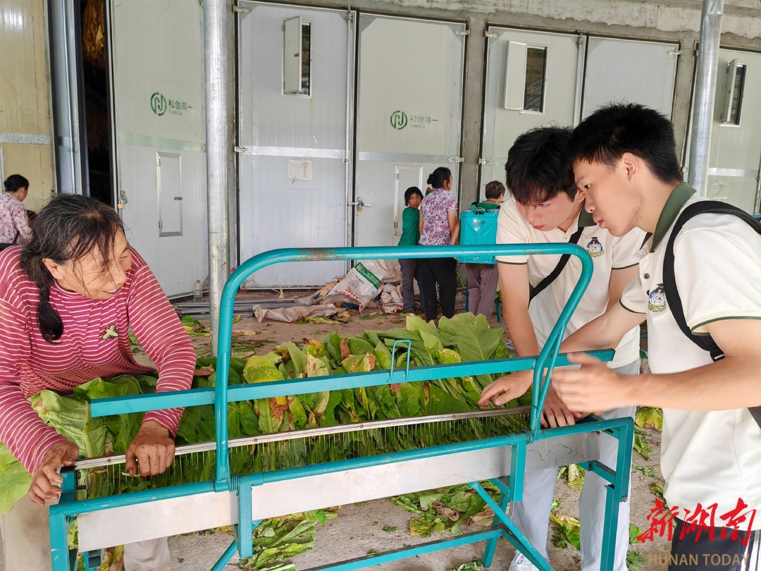采摘收尾,团队携新采烟叶赶往烤烟厂。他们围绕烤烟厂的产量效益、技术应用等情况开展深入调研:因气候优良,走马坪村烟草产量高、品质好,带来可观经济效益,也给村民提供了岗位。“厂子是政府出钱建的,让我们老年人能在家乡搞产业!” 烤烟厂工作人员激动地说。在这里,团队成员全程体验烤烟全流程—烟叶分类、装炕,控温烘烤、出炉分拣,每个环节都细看、勤学、上手试,在实践中找规律。