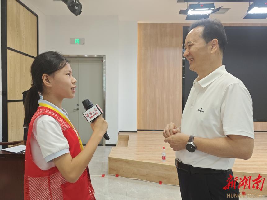 活动最后,湖南日报全媒小记者周善安采访了周跃五老师,他表示,“我曾经见过很多未成年吸毒人员,他们因懵懂无知误入歧途,每每回想都令人痛心不已。所以,我希望借助这个暑假,吸引更多青少年参与禁毒教育,让他们充分认识毒品、了解其危害,学会精准识别并坚决拒绝毒品,为他们的健康成长筑牢一道坚实的防护墙。”