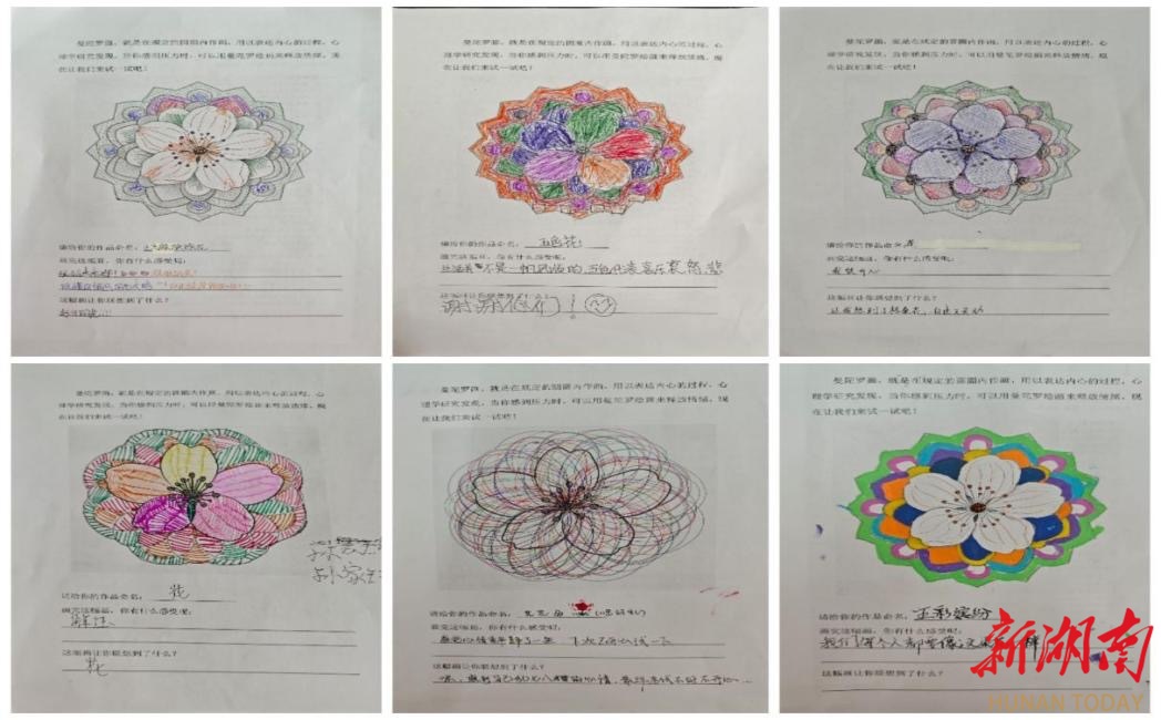宣讲结束后,趣味的“曼陀罗画团辅互动游戏”让现场气氛愈发活跃。志愿者为每位同学分发了曼陀罗绘画模板与彩笔,讲解了曼陀罗绘画作为心理调节工具的作用——通过专注涂色过程,能帮助人平静心绪、释放压力。同学们兴致勃勃地投入创作,在色彩的搭配与线条的勾勒中,尽情表达内心的感受。完成作品后,部分同学主动分享了自己的创作思路与涂色时的心情,志愿者则结合作品给予积极反馈,引导大家在互动中增进对自我的了解,也在分享中感受到被理解与接纳的温暖。