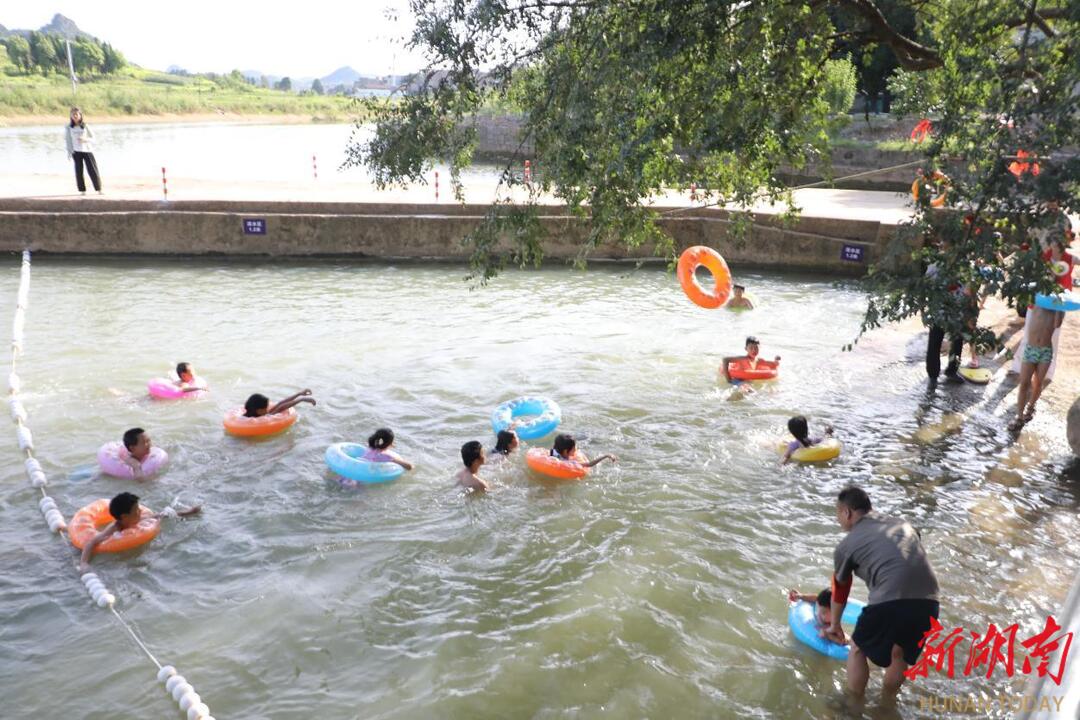 作为孩子们消暑的“新去处”,三合村设立应急借力浮绳界定安全游泳区域,放置了救生竹竿、救生圈、救生衣、警示牌等物资,安排水性好的村民担任游泳专职教练,组织镇村干部和志愿者加强防溺水安全教育及巡防,打好防溺“组合拳”;并将林荫空地改造成为纳凉圣地,配备了帐篷、吊床以及更衣室,为运动后的孩子们提供解暑水果和食品。
