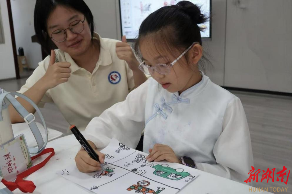 志愿者和小朋友一起画老长沙物件