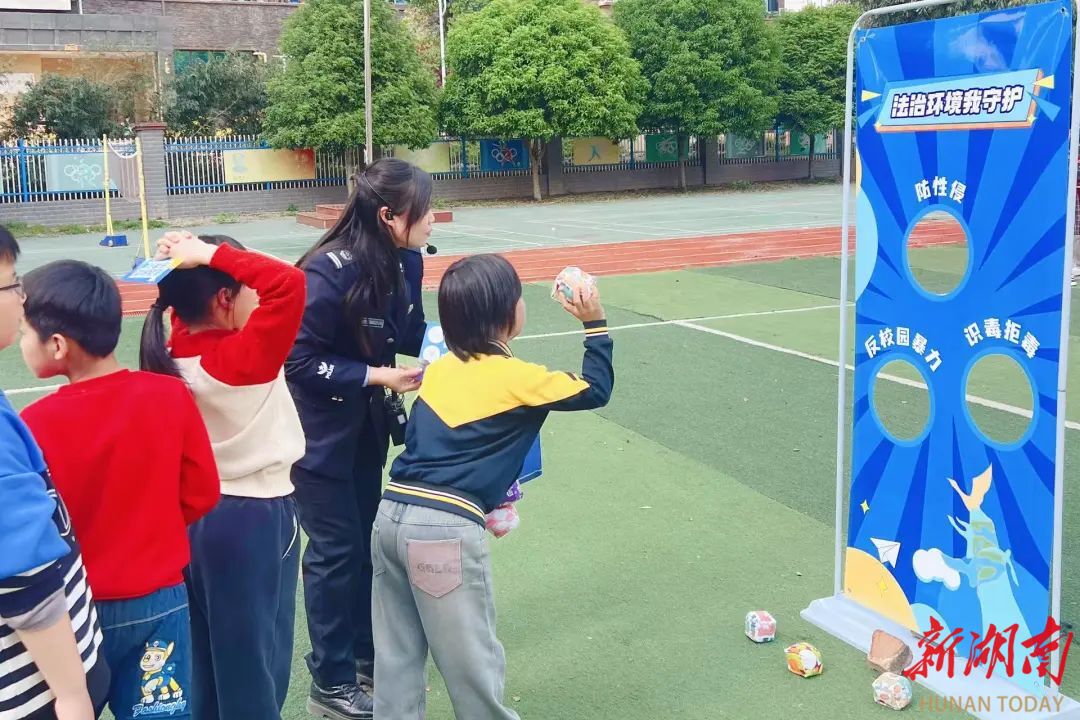 “沙包进啦!”今年4月,铜桥港小学的“哪吒空降校园・普法运动会”上,欢呼声此起彼伏。孩子们唱着法治歌曲闯关,在接力游戏里你追我赶,知识问答时小手举得老高。“父母不能随意打骂孩子”“被欺负要及时告诉老师”——这些法律常识,就在这热闹中被大家记牢了。