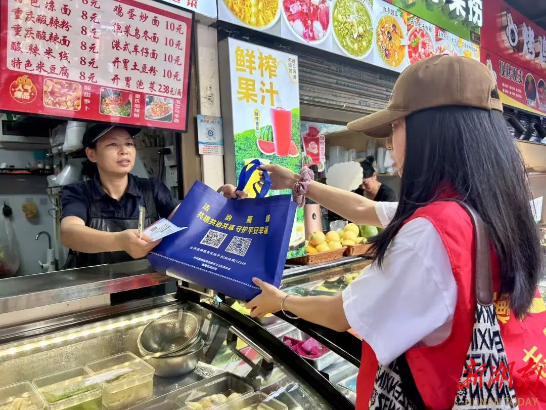 湖南日报·新湖南客户端7月23日讯(通讯员 伍施施 肖子立 贺璇 蒋楠)“您好,这是民法典应知应会200条,可以了解一下。”7月15日下午4时半,雁峰区司法局组织了十多名返乡大学生志愿者,带着满满的法律知识“干货”,来到市府路美食街区,开启了一场“声”入人心的普法之旅,为商圈企业注入法治力量。
