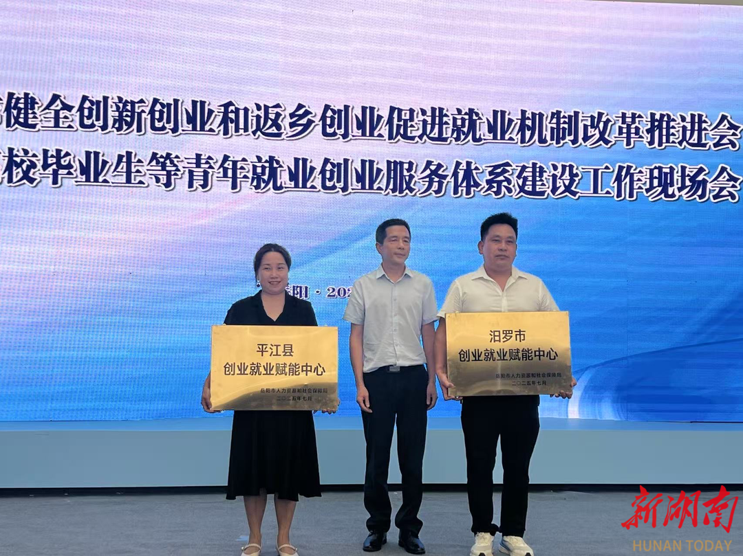 湖南日报·新湖南客户端7月23日讯(记者 徐典波 见习记者 张颖琳 通讯员 范维 陈佳瑶)今天,岳阳市创业就业赋能中心(总部)及首批8家县市区赋能中心授牌仪式在小龙城数字产业园举行,标志着覆盖全市的创业就业服务网络初步形成。全市健全创新创业和返乡创业促进就业机制改革推进会暨高校毕业生等青年就业创业服务体系建设工作现场会同步召开。岳阳市副市长魏淑萍出席会议并讲话。