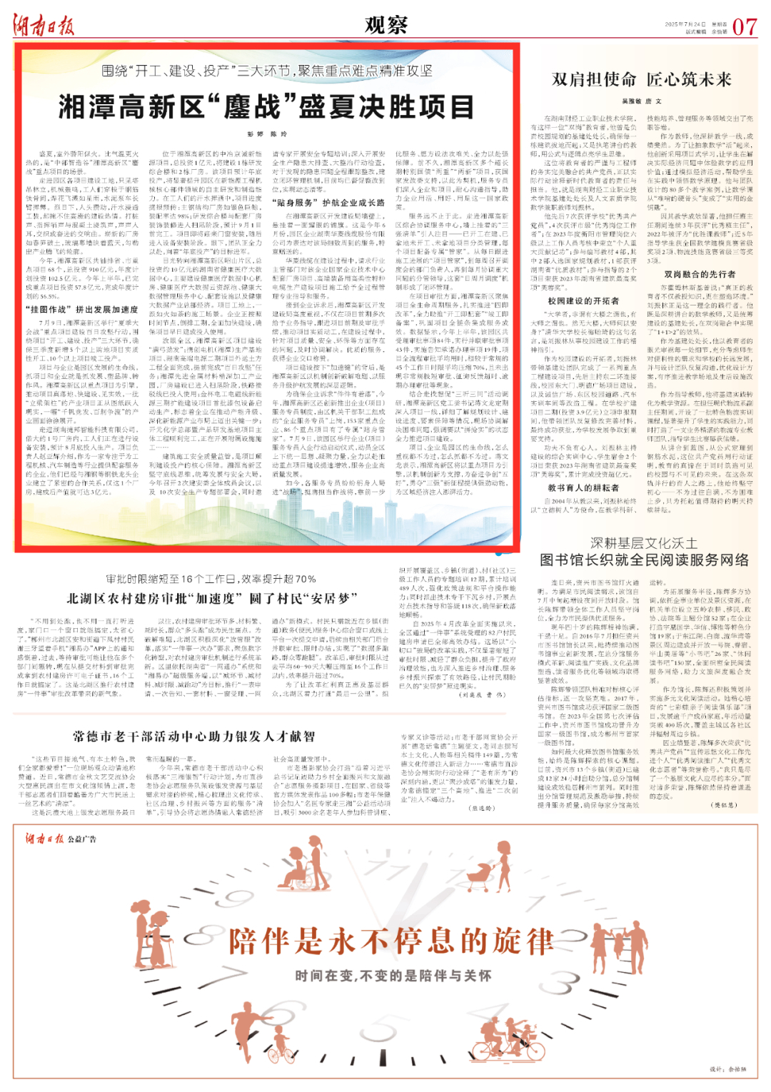 在项目审批方面,湘潭高新区聚焦项目全生命周期服务,扎实推进“四即改革”,全力助推“开工即配套”“竣工即备案”,巩固项目全链条集成服务成效。数据显示,今年上半年,该园区共受理审批事项84件,实行并联审批事项43件,实施告知承诺办理事项19件,项目全流程审批平均用时,相较于常规的45个工作日时限平均压缩70%,且未出现非常规极短审批、征询反馈超时、逾期办理审批等现象。