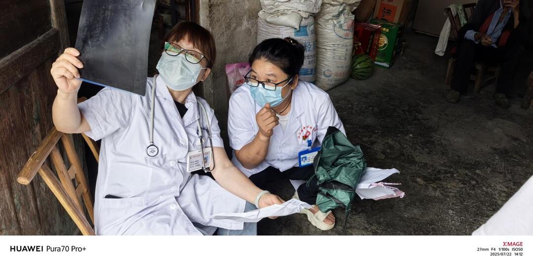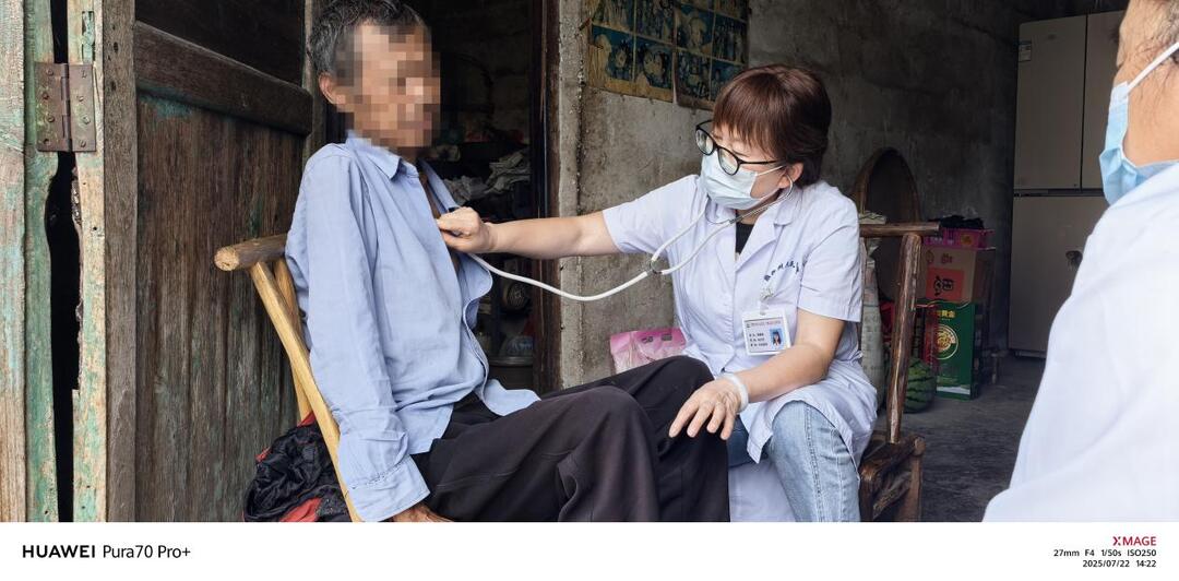 在不太宽敞的堂屋内,靠着卫生院龙金芝的翻译,仔细询问病史、查看检查报告和用药清单。结合龙某海严重的气促、无力等症状,她现场调整了治疗方案,并耐心指导用药及护理要点。临别时反复叮嘱注意事项。老阿婆倚门框,眼中噙泪,用苗语一遍遍道谢:“专家难为(苗语:谢谢)!难为你们来!”翻译传递了这份沉甸甸的感激。