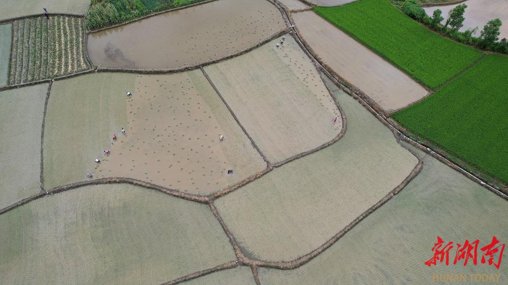 在骥村镇黄公塘村,农田翻耕、水稻插秧......广袤的田野上呈现出一片热火朝天的景象。农田里,种粮大户唐祥国夫妻俩配合默契,在自动化插秧机的高效作业下,转眼间,水田就披上了一层翠绿的新装。