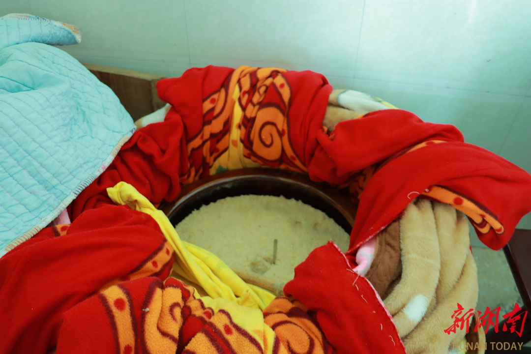 在这方隐于村落的酒坊里,实践队员触摸到了被列入省级非物质文化遗产名录的水酒酿造技艺。三百年古法在此活态传承——袁小青师傅严格遵循三蒸三酿祖训,以古窖泥培育菌群,用杉木甑桶固态发酵,每一道工序都是承载着农耕文明密码的非遗基因。